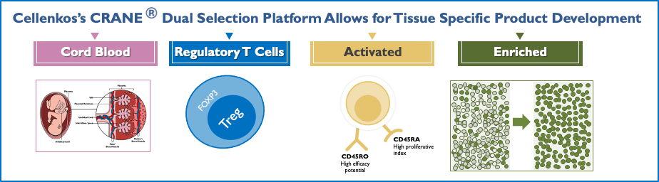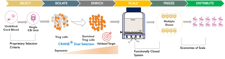 Cellenkos Technology extracts the bonafide suppressor Treg cells derived from the healthy umbilical cord blood, and using its proprietary CRANE® technology, is able to generate Treg cells that can expand inside the body.